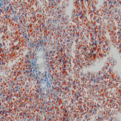 油紅o對脂滴的染色機制一般認為是物理學(xué)上的溶液作用或吸附作用,借溶液作用使脂質(zhì)染色,即油紅o先溶于60%異丙醇中,然后切片浸入油紅o染液中時,油紅o在組織脂質(zhì)的溶解度較60%異丙醇中的溶解度高,所以在染色時油紅o從60%異丙醇中轉(zhuǎn)移入脂質(zhì)中使脂滴顯示紅色。